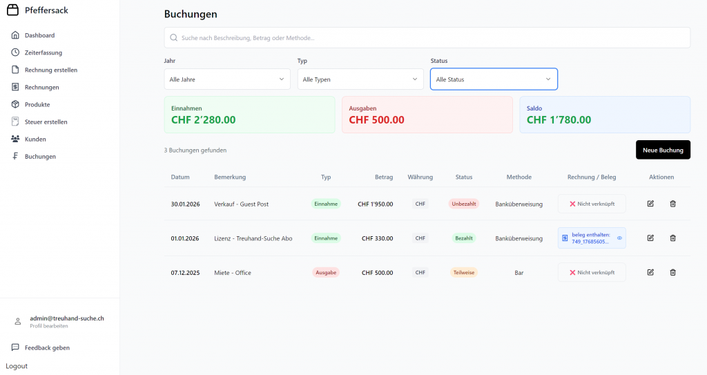 CashCtrl richtet sich an kleine Unternehmen und ist funktional bewusst schlank gehalten. Viele Buchungssätze werden manuell erfasst, weshalb grundlegende Buchhaltungskenntnisse erforderlich sind.