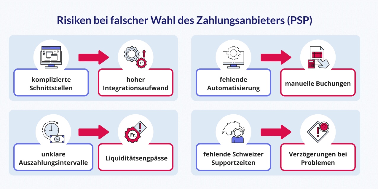 In der Schweiz gibt es eine Vielzahl an PSP-Lösungen – von internationalen Plattformen bis zu lokalen Spezialisten. Wichtig ist, jene zu wählen, die am besten zum eigenen Geschäftsmodell und zu den Finanzprozessen passt.